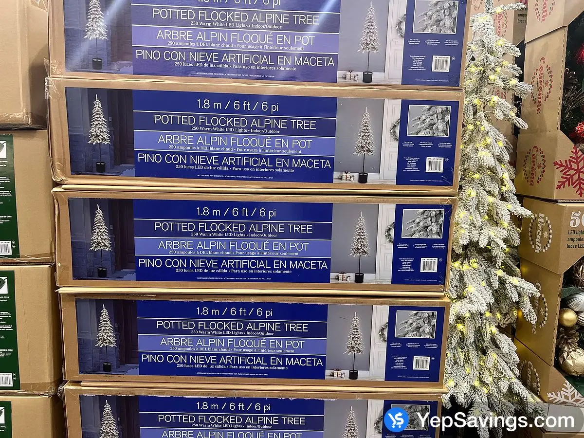 Costco 1.8 M / 6 POTTED FLOCKED TREE 250 LED LIGHTS - Canada (ITM 1601280)