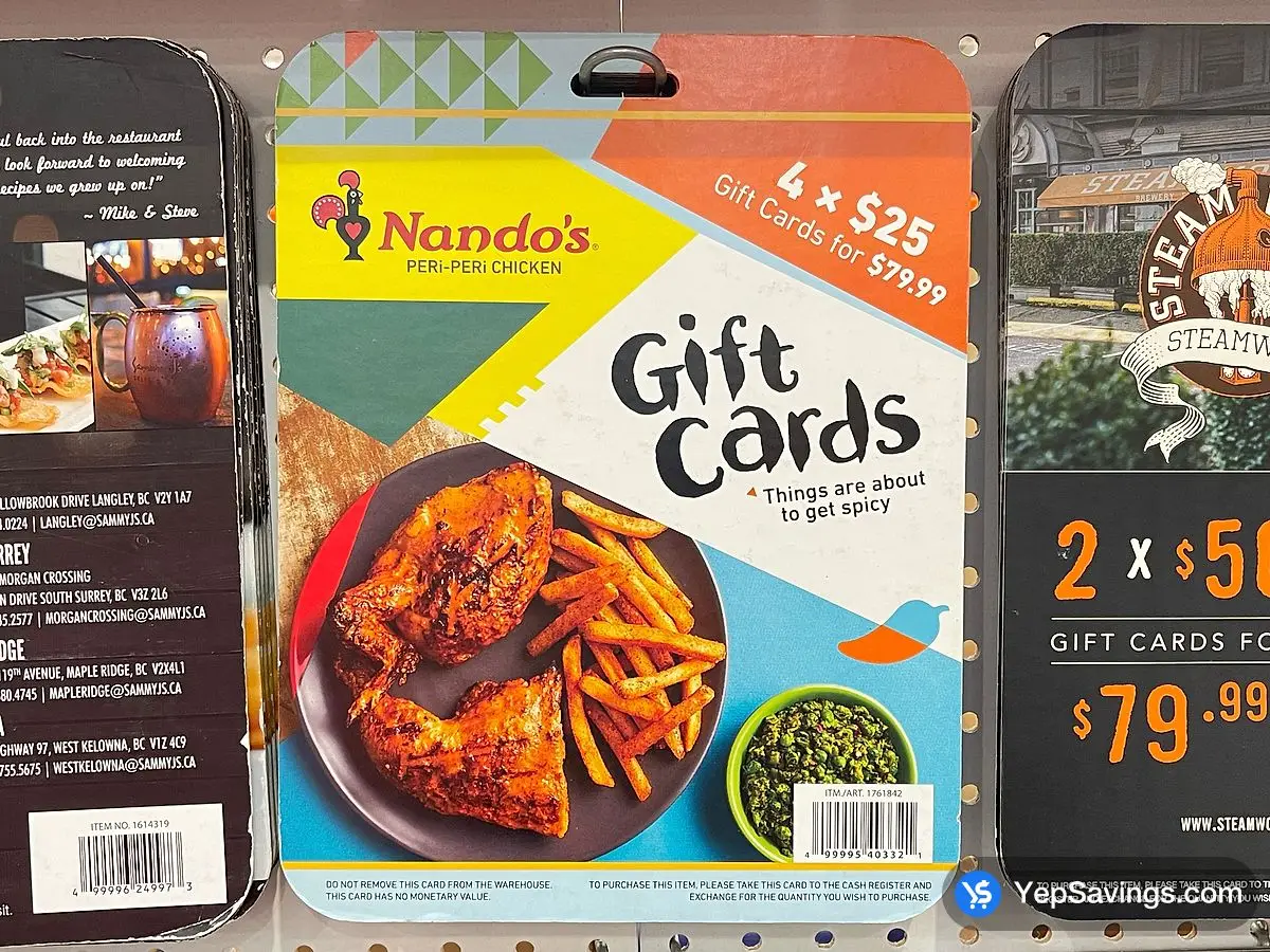 Costco NANDO'S GIFT CARDS 4 X $25 ITEM IS NON - REFUNDABLE - Canada (ITM 1761842)