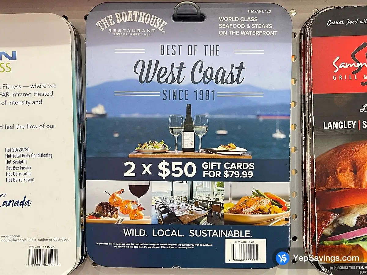 THE BOATHOUSE GIFT CARDS 2 X $50 ITEM IS NON - REFUNDABLE - Costco Canada
